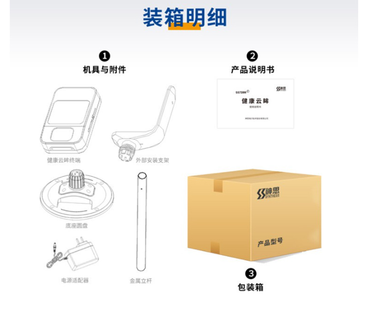 (*由于產品升級或其他原因,神思SS728-M(F)健康碼測溫一體機產品實際參數有可能變更,以實際產品為準。本文中的所有陳述、信息和建議也不構成任何明示或暗示的擔保)