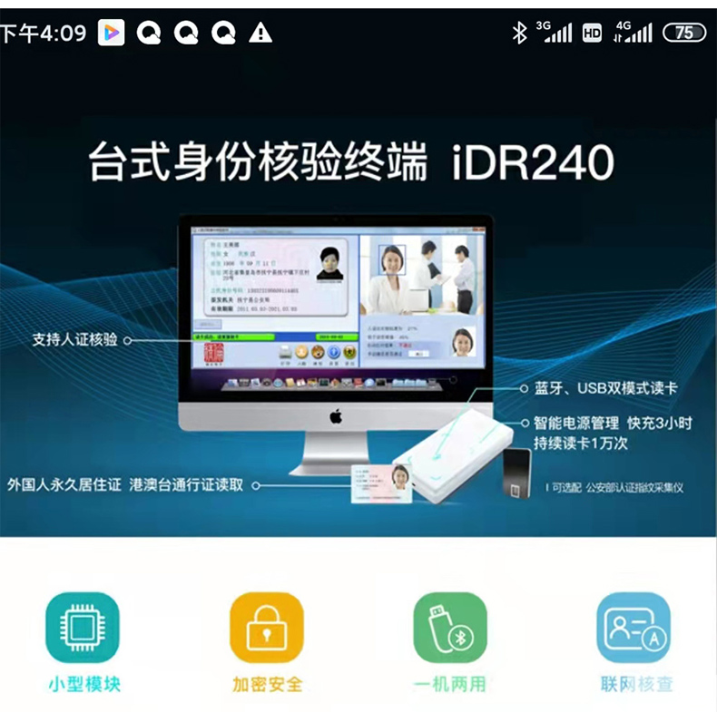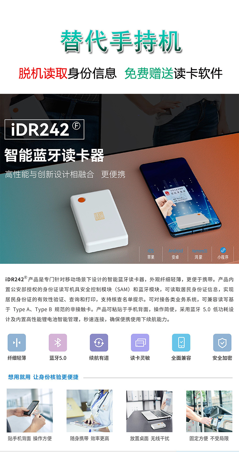 精倫idr242藍牙身份證閱讀器主要用于二次開發,可以鏈接手機,平板,方便快捷