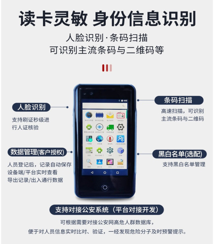 精倫IDR420手持機可用于戶外身份證信息讀取,方便攜帶,具有4g功能