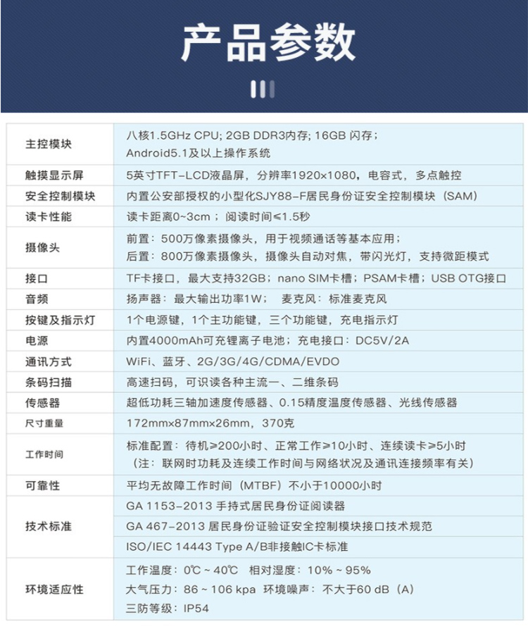 (*由于產品升級或其他原因,精倫IDR420手持機身份證閱讀器產品實際參數有可能變更,以實際產品為準。本文中的所有陳述、信息和建議也不構成任何明示或暗示的擔保)